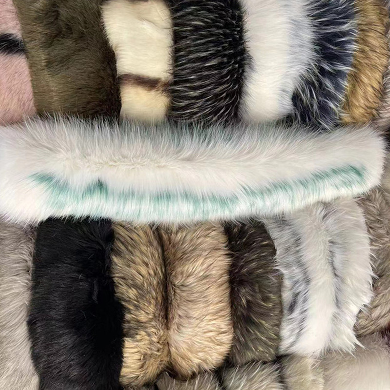 Fabrika doğrudan satış lüks Shaggy katı renk uzun saç 50mm Faux Fox kürk giysi kumaşı yaka peruk